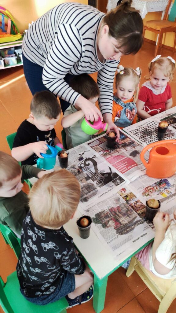 В ГУО «Детский сад №161г.Гомеля» ребята под руководством воспитателей посадили огород на подоконнике. Родители подготовили детям луковицы для посадки. С большим интересом ребята сажали в стаканчики лук, поливали. а потом педагог ярко и красочно оформила детский огород на подоконнике.