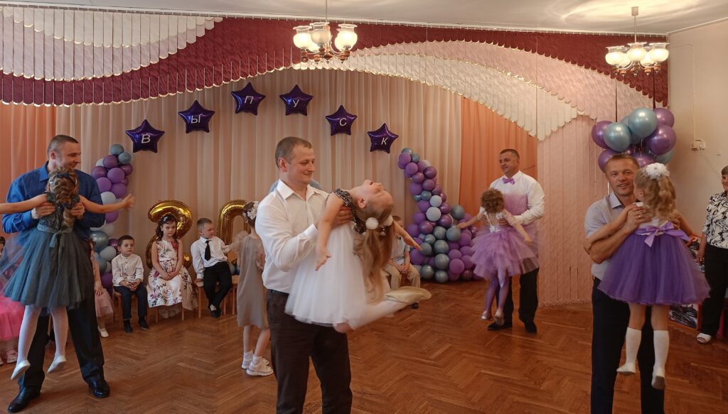 В ГУО «Детский сад №161г.Гомеля» проходят выпускные вечера. Ребята вместе с родителями подготовили красивые номера, поют прощальные песни, читают стихи. Но и не обходится без выпускных ярких вальсов. В конце праздничной программы ндети выпускают шарики.