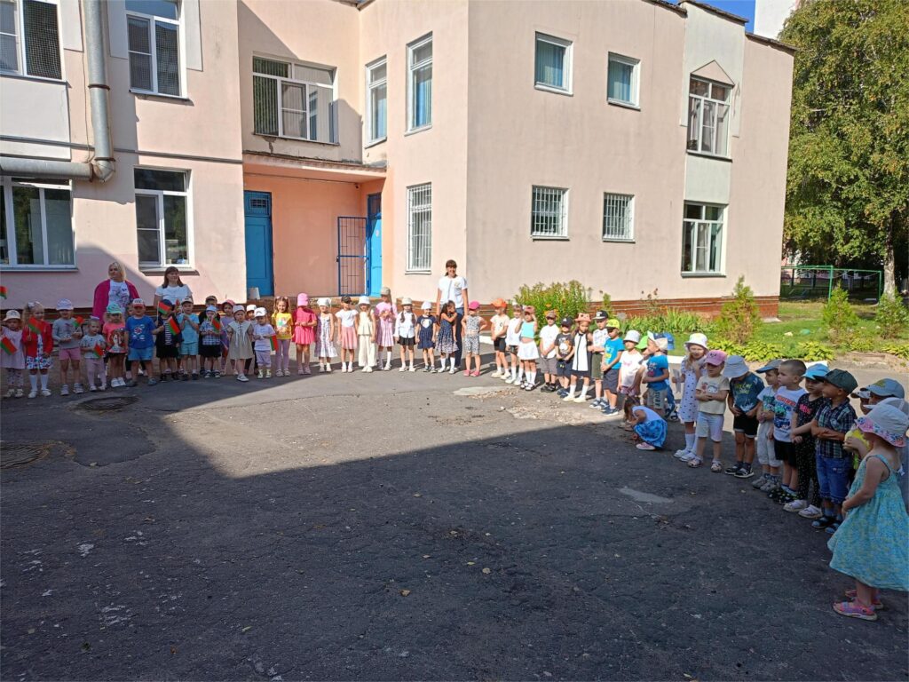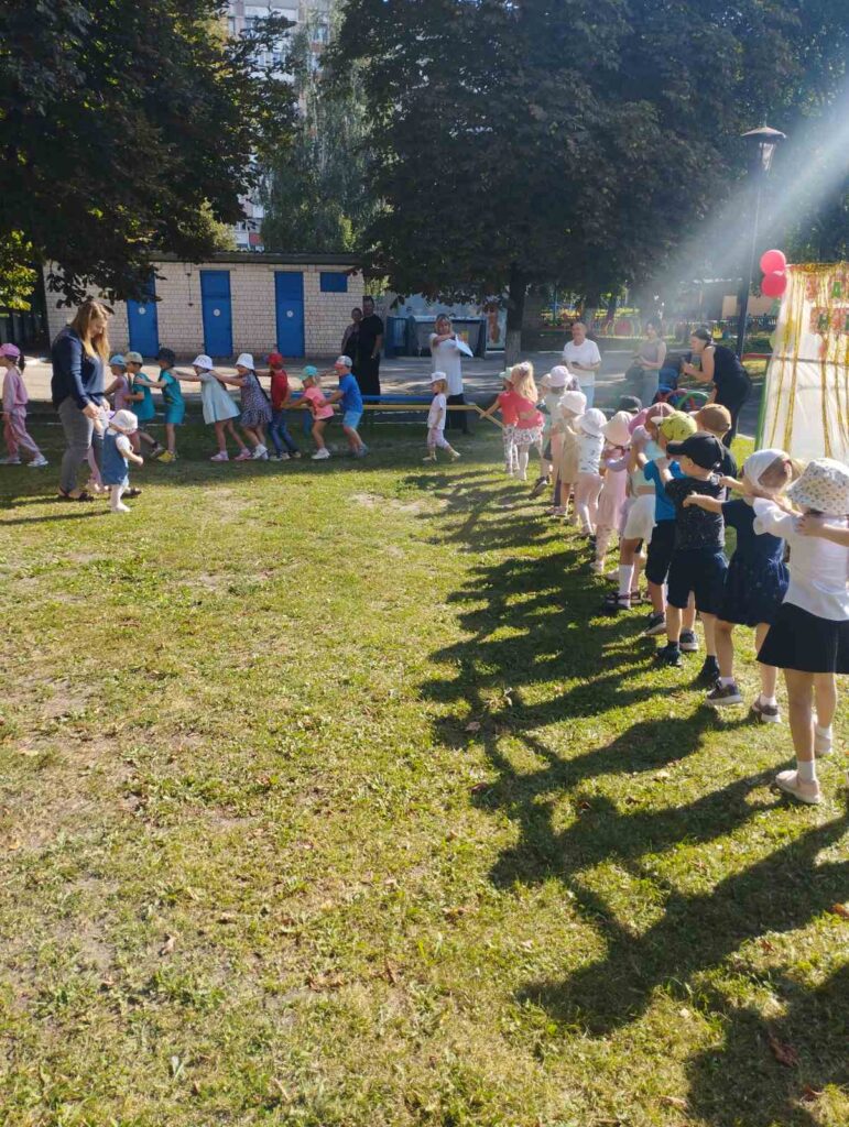 Традиционно в нашем детском саду 1 сентября для средних и старших групп прошла торжественная линейка с прослушиванием гимна. После этого ребят пригласили на развлекательно-игровую программу. В гости к ним приходил Незнайка, который играл с ребятами в игры, провел эстафеты, но и конечно же не обошлось без веселых песен.