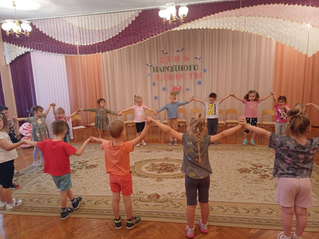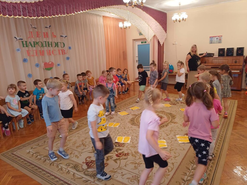 В ГУО «Детский сад №161 г. Гомеля» прошло тематическое развлечение, посвященное Дню народного единства. Ребятам старших групп рассказали об истории возникновения этой даты. Ребята поиграли в белорусские народные игры, водили народные хороводы и танцевали белорусский флэшмоб.