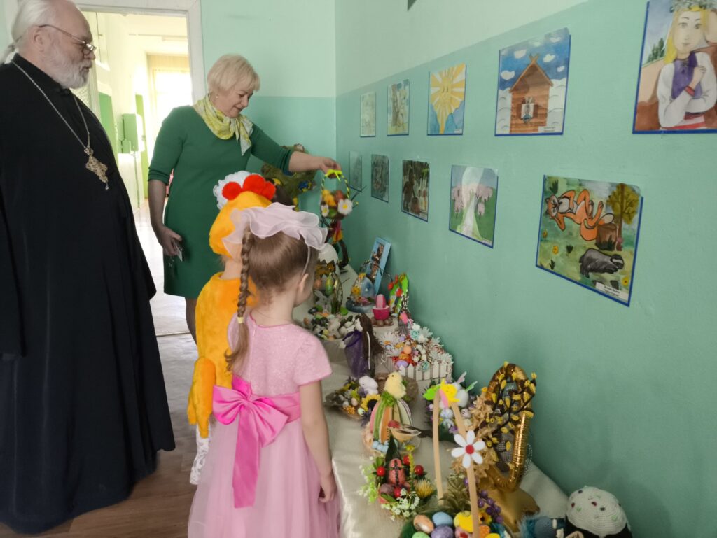 В ГУО «Детский сад №161 г.Гомеля» прошло развлечение «Пасха». Дети пели песни, читали стихи, прославляющие Иисуса Христа. На празднике присутствовал почетный настоятель Храма Иконы Божией Матери «Скоропослушница» отец Мефодий, который поздравил всех присутствующий с праздником и подарил детям сладкие угощения, а нашему саду икону с изображением Иисуса Христа.